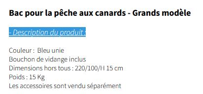 Cannes à pêche, paniers, pompe, canards, bateaux pirates, dauphins, licornes et autres animaux à pêcher sont fournis.